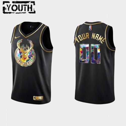 Dres Milwaukee Bucks Prilagođeni Nike 2021-22 Crno Golden Edition 75th Anniversary Diamond Swingman - Dječji